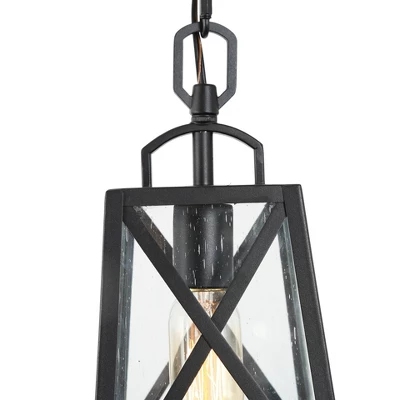 Why not brighten up your house’s exterior and interior with this trapezoid outdoor flush mount pendant light by LNC? This outdoor flush mount pendant light features a sturdy matte black frame with a clear seedy glass shade. The solid aluminum construction and seedy glass add farmhouse vintage appeal chic. The classic hanging lantern with a nautical feel works well in rustic country decors or seaside homes, great for modern, farmhouse, rustic, traditonal or transitional style decor.