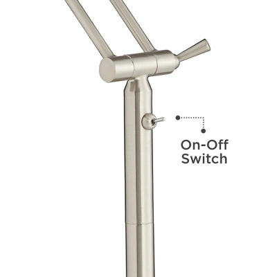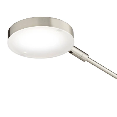 From 360 Lighting, this energy-efficient LED floor lamp is designed for task lighting purposes. It comes in a sleek metal frame made of thin rods and a round base and head, all dressed in a silvery satin nickel finish. Adjust the height or change the direction of the lighting with the movable joints. Perfect for a reading space or sitting area.
