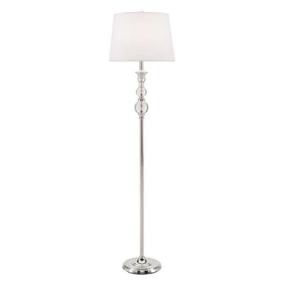 Add the beautiful Clarissa Crystal Globe Floor Lamp from Inspire Q to your decor! This truly versatile piece offers an easy to match off-white fabric shade, two elegant crystal glass spheres, and a light nickel finish. This lamp’s 3-way switch creates different brightness levels making it easy and convenient to illuminate your favorite space in style! This drum shade style lamp would complement as an accent to your living room, next to your sofa or favorite reading chair! Compatible with fluorescent, halogen, and LED bulbs. Light bulbs not included.