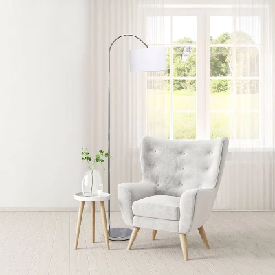 Upgrade your basic floor lamp with this simple but fun arched floor lamp! This item has a fresh look with a brushed nickel finish throughout and a clean white fabric shade. It’s the perfect addition to modern or traditional styled rooms, while illuminating your space in a subtly, yet necessary way. Item is sold in a variety of neutral shade color options.