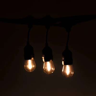 The Aurio LED Suspended Patio Light Set will transform any outdoor patio or event into an amazing experience, with its 15 warm white vintage Edison style bulbs. The thick insulation makes the light string durable and can be used year-round through cold winters, windy autumns, and hot summers. Perfect for entertaining, the Aurio LED Suspended Patio Light Set will set the mood for a magical night outside. Connect several of them together to create a beautiful ambience to a venue of any size.