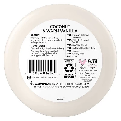 - As a part of the Beloved by Love Beauty and Planet Coconut & Warm Vanilla bath and body collection, this vegan candle is an ideal gift to give or treat yourself.