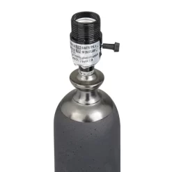 - This glam-style table lamp features a silver and clear body paired with a gray shade