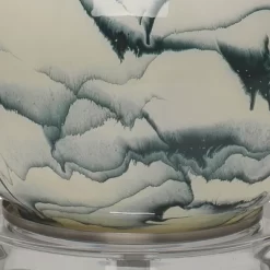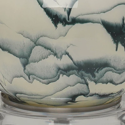 Swirls of calming colors splash across the surface of this double gourd table lamp. Made of mouth-blown glass, the marbled white and blue easily coordinate with a range of décor. Balanced on a clear acrylic base and topped with a crisp cream linen shade for a tailored finish. While no two will look exactly the same, the slight variations make this lamp a statement piece in any tabletop.
