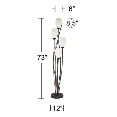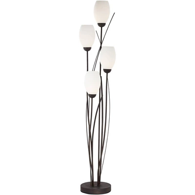 Inspired by nature, this modern four-light floor lamp adds a bright visual accent to any room. From the Franklin Iron Works brand, the design features exquisite white cased glass “buds” atop a metal frame reminiscent of tree branches or waving grass. A ginger black finish provides a beautiful contrast to the bud-shaped glass.