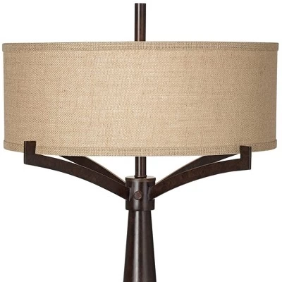 This set of two modern styled table lamps design is from the Franklin Iron Works collection of lamps. Inspired by the art of iron-working, the design comes in a rich Allegheny bronze finish. A multi-arm support for the shade provides an iron industrial vibe. The shade itself is a burlap drum with a decorative top finial.