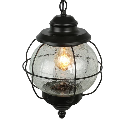 - Designed in a refined globe shape to match any farmhouse decor, featuring a spherical seeded glass globe upheld by a premium anti-rust metal cage.