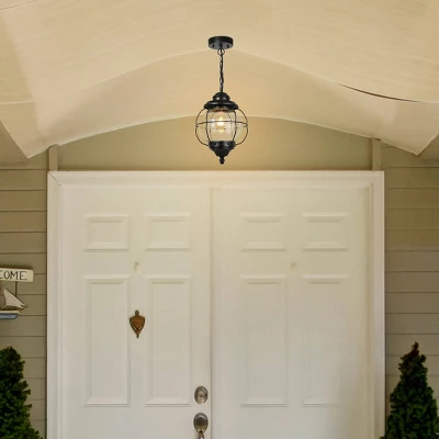 Brighten up your house’s exterior and interior with this classic outdoor flush mount pendant light by LNC. This outdoor flush mount pendant light features a sturdy matte black frame with a clear seedy glass shade. The solid aluminum construction and seedy glass add farmhouse vintage appeal chin. The classic hanging lantern with a nautical feel works well in rustic country decors or seaside homes.