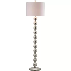 The posh modern glamour of this contemporary table lamp transforms any living room. Its three exquisite glass spheres feature a dramatic smoke grey hue that’s paired with deluxe brass gold metal hardware. Sold in sets of two. Care Instructions: Before cleaning any lamp shade or fixture, disconnect the power source. Wipe with a soft, dry cloth. Avoid the use of chemicals and household cleaners as they may damage the finish.
