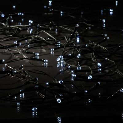 - PRODUCT DETAILS- Material: Plastic & Metal. Solar Panel Dimensions: (L) 2.75” x (W) 4” x (H) 1”. Includes: (1) 39-foot-long strand of Lights with 100 1.7 Lumen LED Bulbs, 2V 70MA Solar Panel & Ground Stake. Light Color: White. String Color: Green.