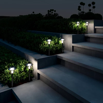 The Set of 6 Stainless Steel Solar Pathway Lights by Nature Spring provide delightful accent lighting and make a wonderful addition to any yard or pathway. The solar light soaks up the sun’s energy during the day and automatically turn on at dusk for hassle-free illumination. They feature a high capacity AA 1.2V 600mAh Ni-MH rechargeable battery that provides long lasting, quality performance. The pathway lights are water-resistant and are made with an anti-rust stainless steel material, so they can be used in all kinds of weather instead of just warm summer nights. Each light is easy to install and provides practical outdoor lighting, making them a practical and stylish solution for any garden, walkway, path, patio, driveway, landscape, and more!