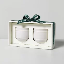 2pk Barrel Ceramic Candle Gift Set – Salt/Canvas 4oz – Hearth & Hand™ With Magnolia