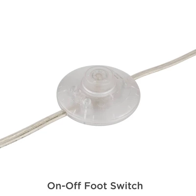 - Standard medium base socket rated up to 150 watts. On/off step switch in cord 33″ from base of lamp.