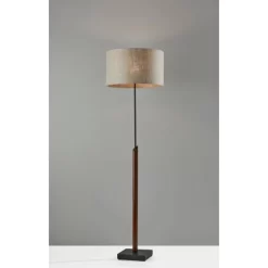 With a clean, minimalist shape and a simple color palette, the 25″ tall Richard table lamp exudes modern style. It features a black metal rectangular base measuring 5.5″ by 8″. The black finish continues up the narrow rectangular stem leading to a square, beige textured fabric shade that softly distills the light. For convenient access to AC power on your table or desk, the base includes an outlet subtly located on the back. The 60W bulb (not included) is operated by a rotary switch located on the socket, and the lamp features a 5′ clear cord. Complete your space’s look with the coordinating Richard floor lamp.