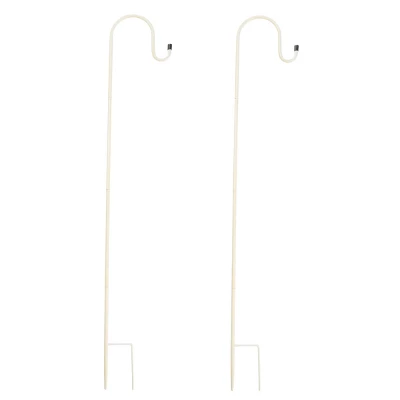 - PRODUCT DETAILS – Materials: Iron, Polycrystalline, Solar Panel, and Plastic. Dimensions: (L) 5.75” x (W) 5.75” x (H) 7”; Shepherd Hooks: (H) 31”. Includes 1AAA 400mAh NI-MH Battery, 2 Lanterns, and 2 Hooks. Color: White.