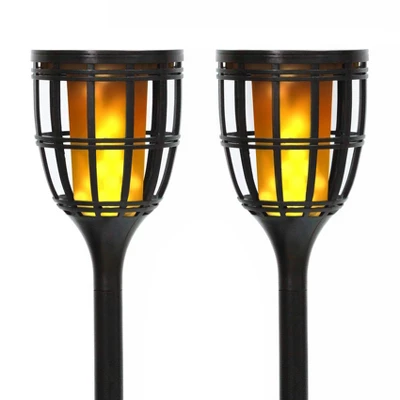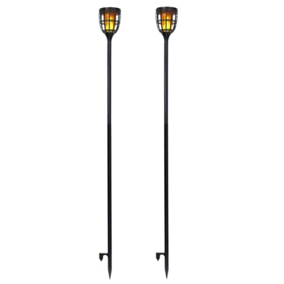 The TECHKO Solar Torch Light provides a wide array of useful lighting options. This product comes with the option of two different lighting modes. The first being a traditional still lighting effect for everyday uses. With the second option being a flickering flame effect to simulate an actual torch; providing a different lighting ambience while avoiding the risk of an actual flame. Two metal poles providing greater durability and a ground stake are provided for adjustable height and includes an alternative table stand for counters and other surfaces. These Solar Torch Lights come with an IP65 performance rating allowing the units to endure moderate outdoor weather conditions. Contains two solar torch lights.