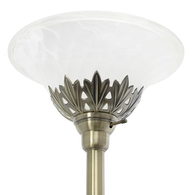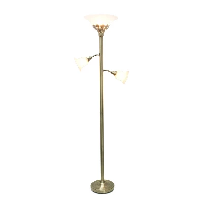 Brighten up your living space with this elegant 3 light floor lamp. It features 2 adjustable reading lights to focus on the area of your choice. The beautiful Antique Brass finished metal base is accented by white scalloped glass shades to complete the timeless look. Perfect for your bedroom, office, foyer or living room and available in a variety of other finish options.