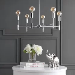 - Comes with 12-feet of cord, 6-feet of chain. Sloped ceiling adaptable.