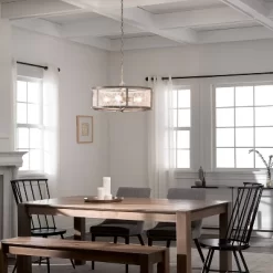 Add timeless elegance to your space with this clear crystal chandelier and its sparkling shade made from prisms and faceted squares. A band of soothing satin nickel finish metal adorns the top of the tiered, upside down cake design. This striking accent brightens your home with seven bright halogen lights.
